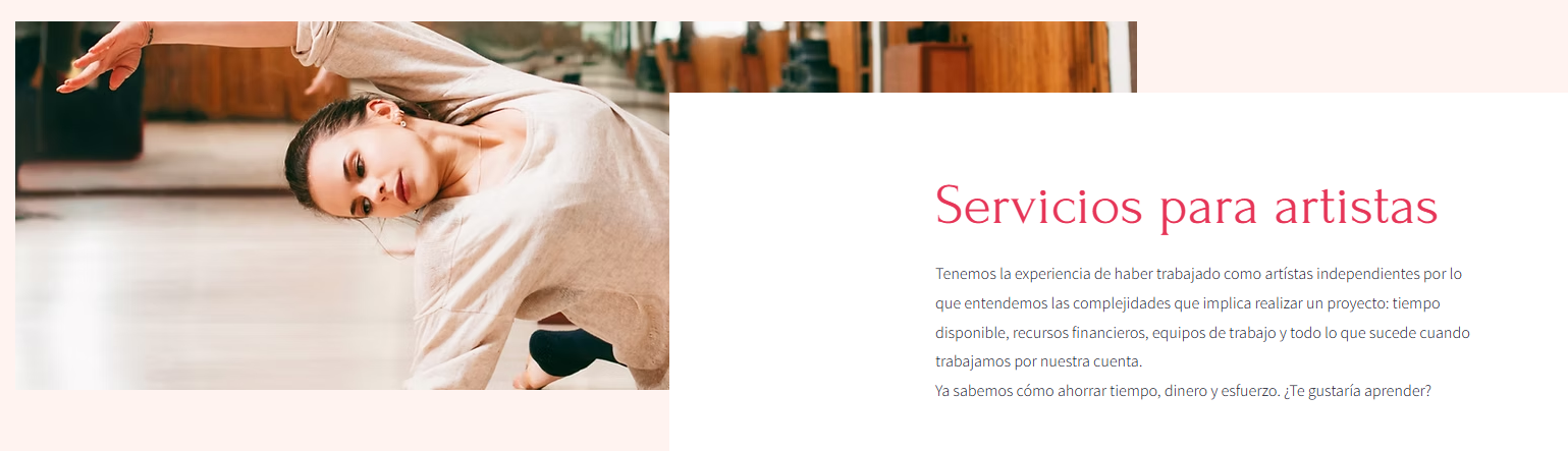 Lo más importante es que logres lo que buscas para tu proyecto artístico, te ofrezco servicios de asesoría personalizada para artistas o talleres para procuración de fondos, diseño de carpetas de venta y promoción para que tus ideas las conviertas en un plan estratégico y logres tus metas. Además, tenemos servicio de diseño para quienes quieran trabajar diseño de marca, carteles para funciones y muchos otros servicios especialmente diseñados para ayudarte a impulsar tu carrera, además de todo tipo de talleres para artistas.